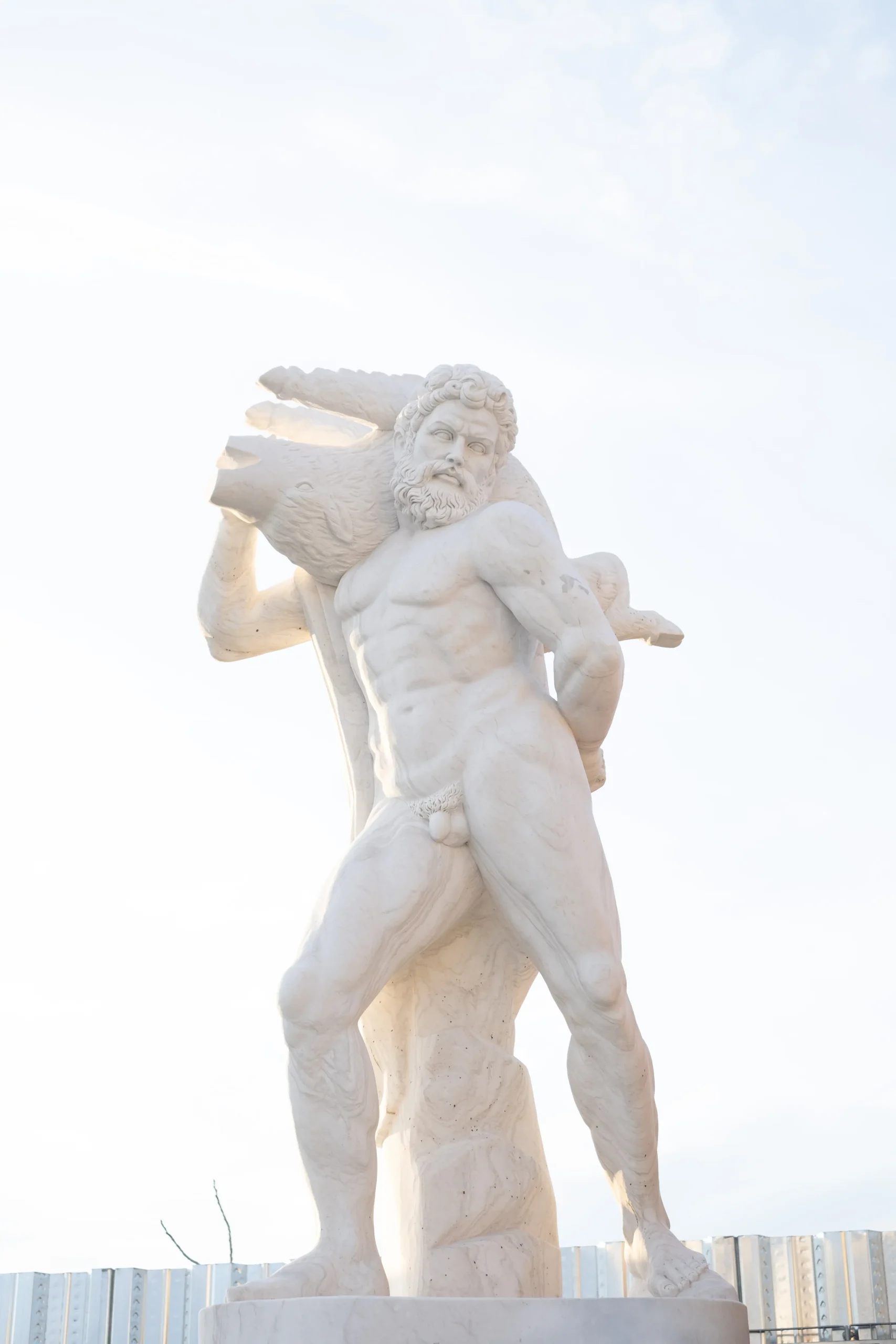 La quarta impresa imposta ad Ercole fu di catturare vivo il feroce cinghiale di Erimanto, un animale che devastava i declivi del monte, deturpando la campagna nei pressi di Psofide. Prendere l’animale vivo era una fatica di estrema complessità, ma Ercole lo cacciò dalla tana emettendo forti grida e lo rincorse finché l’essere, stanco e sovrastato dalla neve alta, si lasciò catturare.